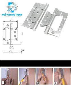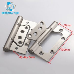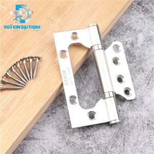 Bản lề âm dương tại Ngũ Kim Đại Thịnh thường được chế tạo từ Inox 304 hoặc hợp kim cao cấp với độ dày tiêu chuẩn từ 2.5mm đến 3mm. Thiết kế lá bản lề nhỏ nằm gọn trong lòng lá bản lề lớn giúp triệt tiêu độ dày khi đóng cửa. Cơ chế này đòi hỏi sự chính xác tuyệt đối trong quá trình gia công cơ khí để đảm bảo trục quay không bị rơ lắc. Dòng bản lề này cực kỳ phù hợp cho các hệ cửa phòng ngủ, cửa nhà vệ sinh hoặc các cánh tủ áo có trọng lượng nhẹ đến trung bình.